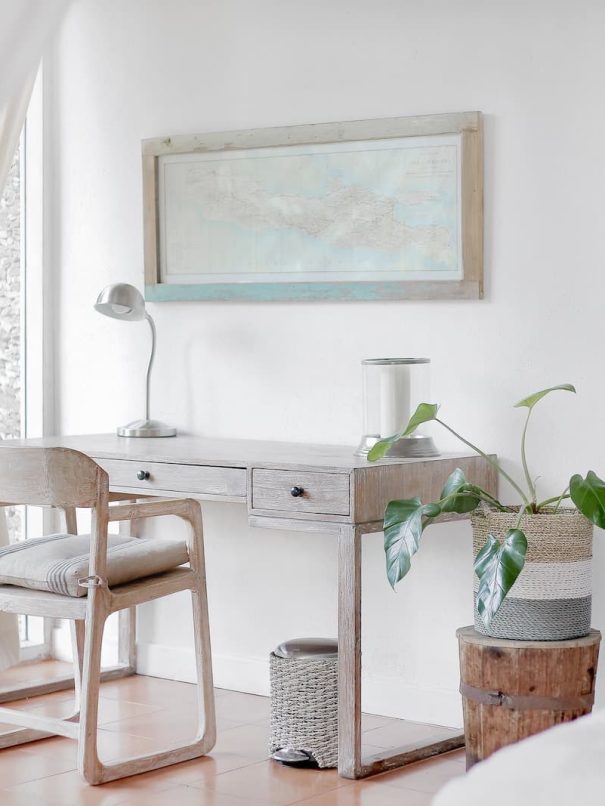 Cozy studio with hardwood floors, bright windows, and stylish art.